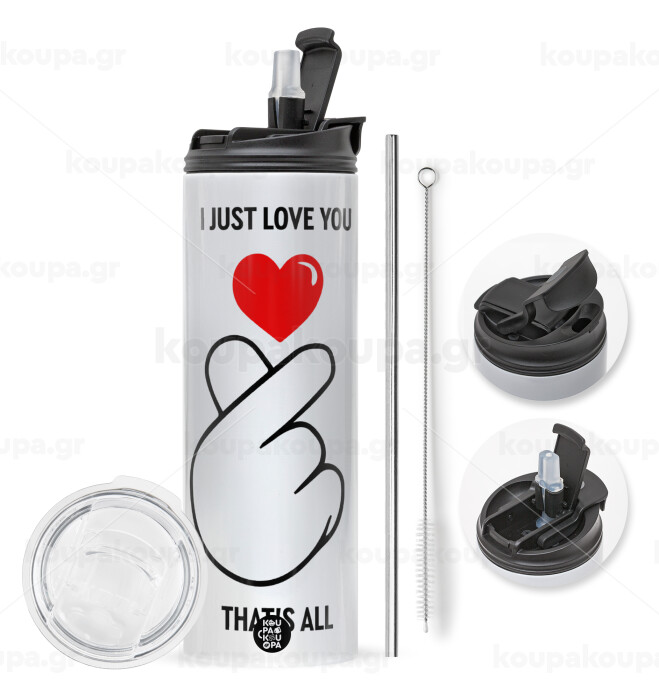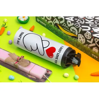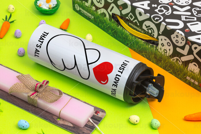 I just love you, that's all., Πασχαλινή Λαμπάδα με Travel Tumbler θερμό με διπλό καπάκι (600ml, BPA free) & κερί αρωματικό πλακέ (30cm) (ΡΟΖ)