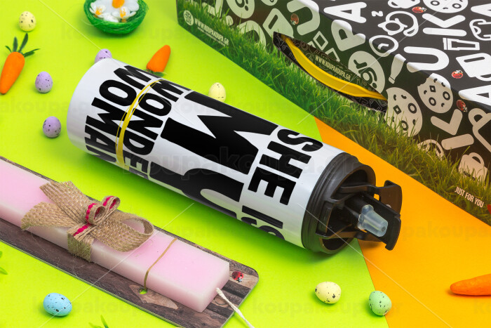 She is my wonder woman, Πασχαλινή Λαμπάδα με Travel Tumbler θερμό με διπλό καπάκι (600ml, BPA free) & κερί αρωματικό πλακέ (30cm) (ΡΟΖ)