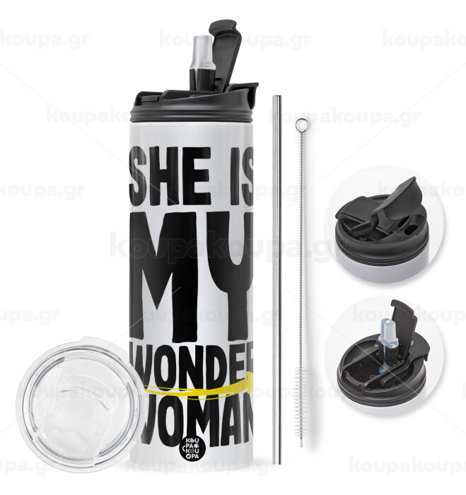 με 2 καπάκια για να επιλέξετε ανάμεσα σε απλό ποτήρι με καλαμάκι ή μετατροπή σε παγούρι θερμό με 2 τρόπους χρήσης (καλαμάκι ή στόμιο) με μεταλλικό επαναχρησιμοποιούμενο καλαμάκι. Απολαύστε το αγαπημένο σας ρόφημα κάθε στιγμή στο μοναδικό αυτό οικολογικό θερμό. Διατηρεί τη θερμοκρασία για αρκετές ώρες και είναι κατασκευασμένο από ανοξείδωτο ατσάλι. Κατάλληλο για ζεστά και κρύα ροφήματα. Συνοδεύεται από βουρτσάκι καθαρισμού για το καλαμάκι.