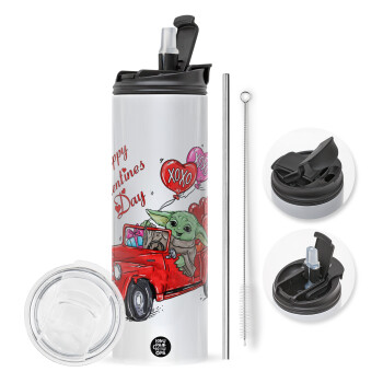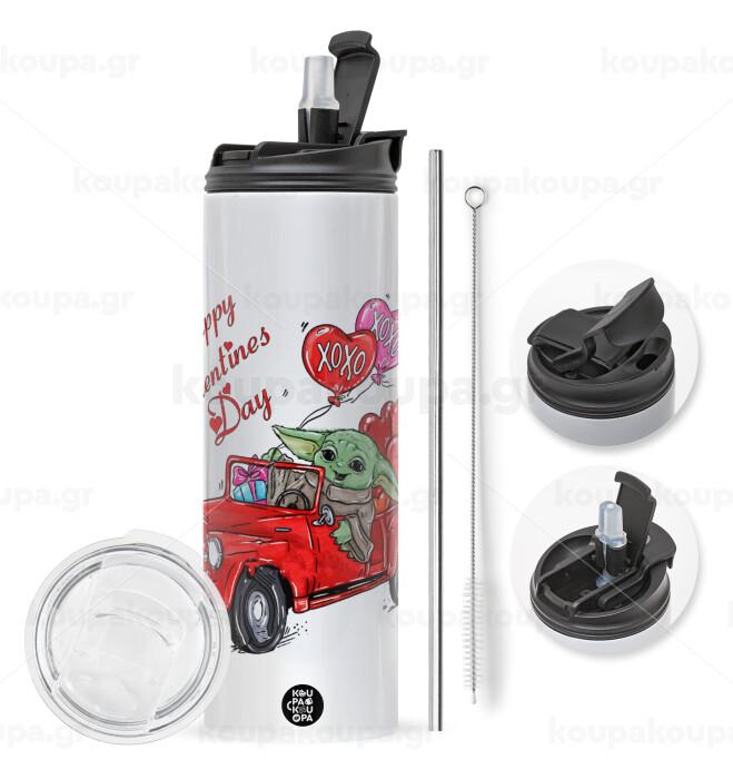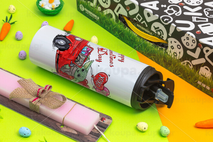 Yoda, happy valentines day (xoxo), Πασχαλινή Λαμπάδα με Travel Tumbler θερμό με διπλό καπάκι (600ml, BPA free) & κερί αρωματικό πλακέ (30cm) (ΡΟΖ)