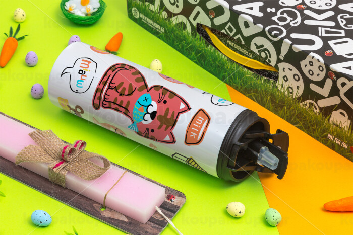 Cats and Fishes, Πασχαλινή Λαμπάδα με Travel Tumbler θερμό με διπλό καπάκι (600ml, BPA free) & κερί αρωματικό πλακέ (30cm) (ΡΟΖ)