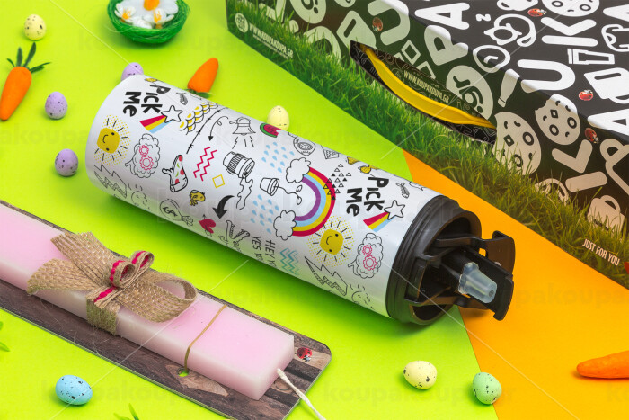 Doodle kids, Πασχαλινή Λαμπάδα με Travel Tumbler θερμό με διπλό καπάκι (600ml, BPA free) & κερί αρωματικό πλακέ (30cm) (ΡΟΖ)