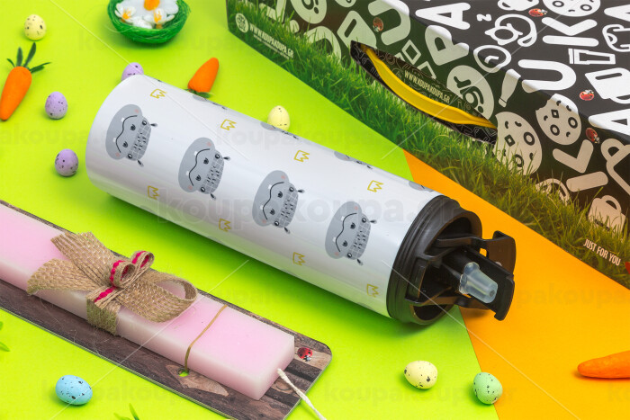 Hippo, Πασχαλινή Λαμπάδα με Travel Tumbler θερμό με διπλό καπάκι (600ml, BPA free) & κερί αρωματικό πλακέ (30cm) (ΡΟΖ)