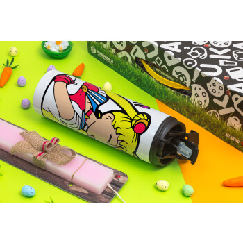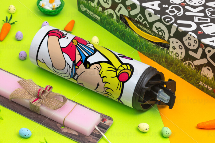 Sailor Moon, Πασχαλινή Λαμπάδα με Travel Tumbler θερμό με διπλό καπάκι (600ml, BPA free) & κερί αρωματικό πλακέ (30cm) (ΡΟΖ)