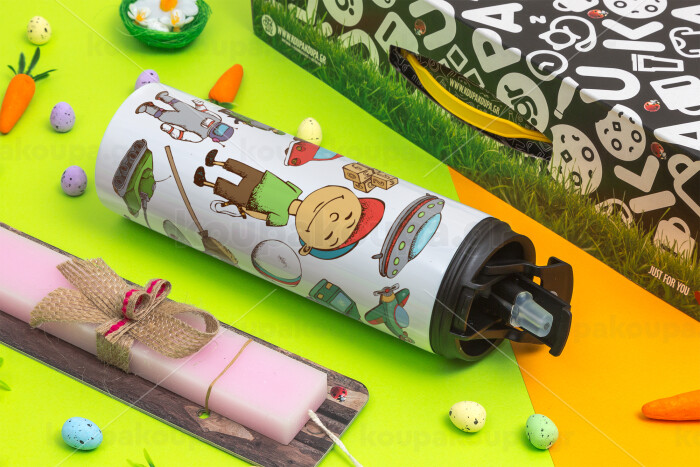 Toys Boy, Πασχαλινή Λαμπάδα με Travel Tumbler θερμό με διπλό καπάκι (600ml, BPA free) & κερί αρωματικό πλακέ (30cm) (ΡΟΖ)