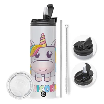 Unicorns cube, Πασχαλινή Λαμπάδα με Travel Tumbler θερμό με διπλό καπάκι (600ml, BPA free) & κερί αρωματικό πλακέ (30cm) (ΡΟΖ)