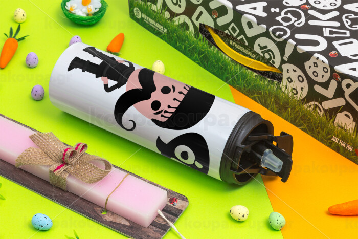 Κρητικός "Οι", Πασχαλινή Λαμπάδα με Travel Tumbler θερμό με διπλό καπάκι (600ml, BPA free) & κερί αρωματικό πλακέ (30cm) (ΡΟΖ)