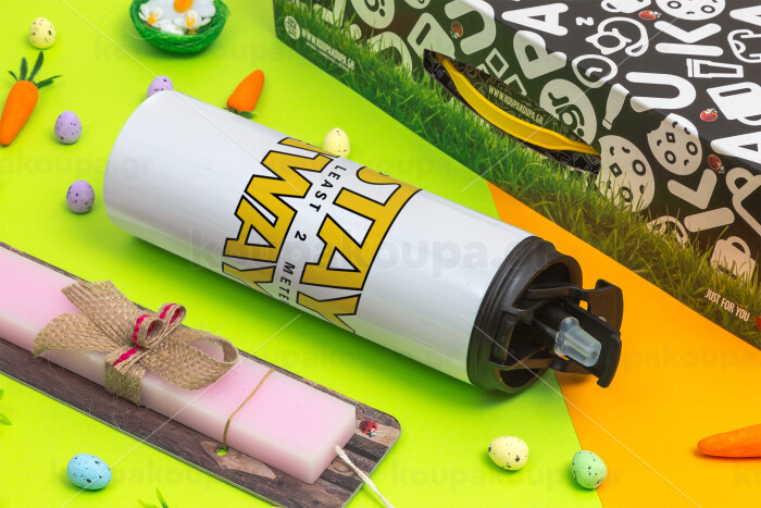 Stay Away, Πασχαλινή Λαμπάδα με Travel Tumbler θερμό με διπλό καπάκι (600ml, BPA free) & κερί αρωματικό πλακέ (30cm) (ΡΟΖ)