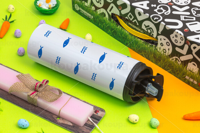 Ψαράκια, Πασχαλινή Λαμπάδα με Travel Tumbler θερμό με διπλό καπάκι (600ml, BPA free) & κερί αρωματικό πλακέ (30cm) (ΡΟΖ)