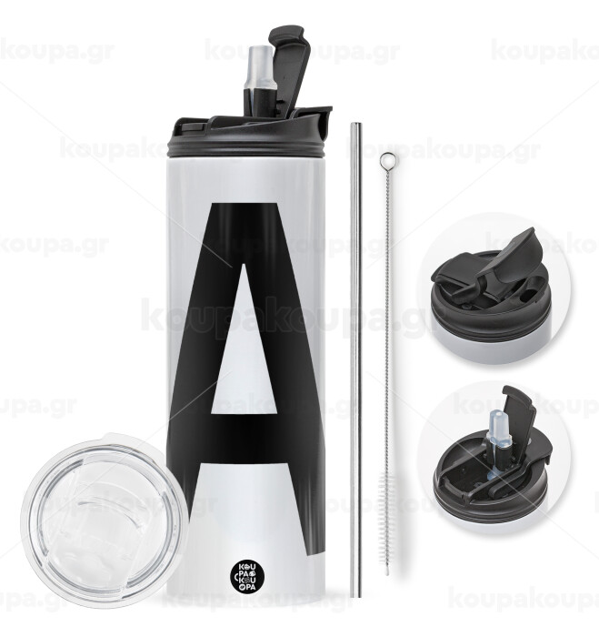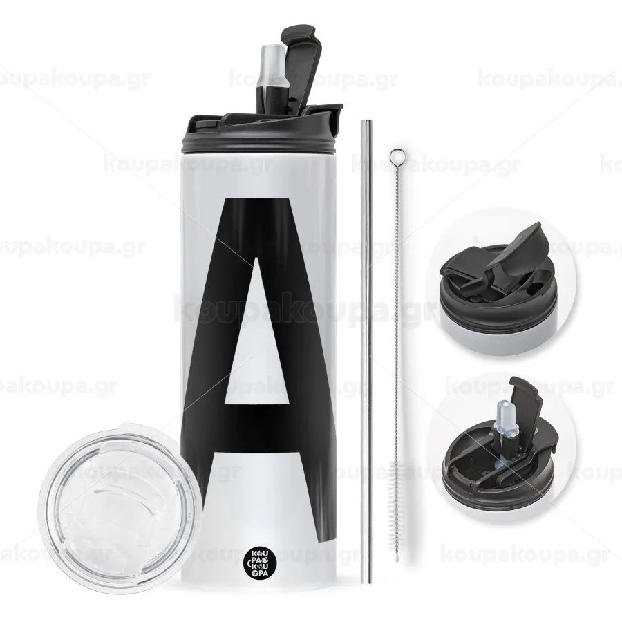 με 2 καπάκια για να επιλέξετε ανάμεσα σε απλό ποτήρι με καλαμάκι ή μετατροπή σε παγούρι θερμό με 2 τρόπους χρήσης (καλαμάκι ή στόμιο) με μεταλλικό επαναχρησιμοποιούμενο καλαμάκι. Απολαύστε το αγαπημένο σας ρόφημα κάθε στιγμή στο μοναδικό αυτό οικολογικό θερμό. Διατηρεί τη θερμοκρασία για αρκετές ώρες και είναι κατασκευασμένο από ανοξείδωτο ατσάλι. Κατάλληλο για ζεστά και κρύα ροφήματα. Συνοδεύεται από βουρτσάκι καθαρισμού για το καλαμάκι.