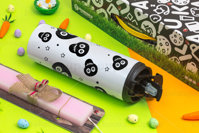Skull avatar, Πασχαλινή Λαμπάδα με Travel Tumbler θερμό με διπλό καπάκι (600ml, BPA free) & κερί αρωματικό πλακέ (30cm) (ΡΟΖ)