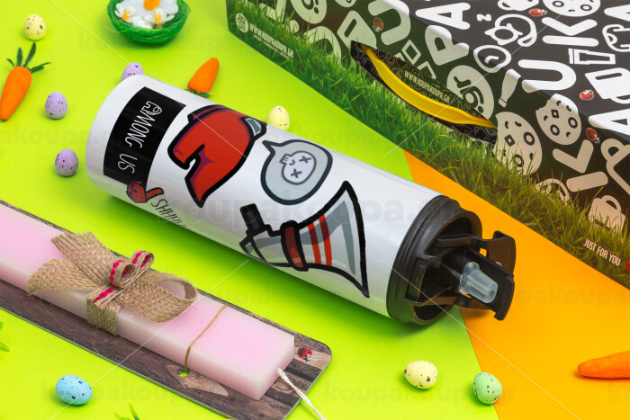 Among US Shhhh!!!, Πασχαλινή Λαμπάδα με Travel Tumbler θερμό με διπλό καπάκι (600ml, BPA free) & κερί αρωματικό πλακέ (30cm) (ΡΟΖ)