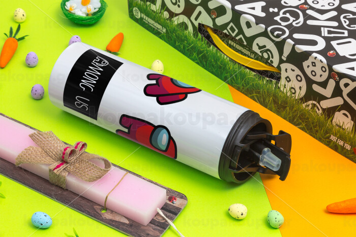 Among US, Πασχαλινή Λαμπάδα με Travel Tumbler θερμό με διπλό καπάκι (600ml, BPA free) & κερί αρωματικό πλακέ (30cm) (ΡΟΖ)