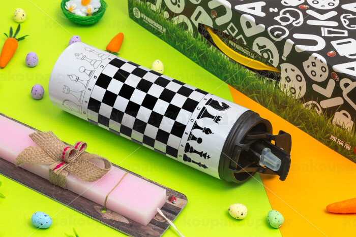 Σκάκι, Πασχαλινή Λαμπάδα με Travel Tumbler θερμό με διπλό καπάκι (600ml, BPA free) & κερί αρωματικό πλακέ (30cm) (ΡΟΖ)