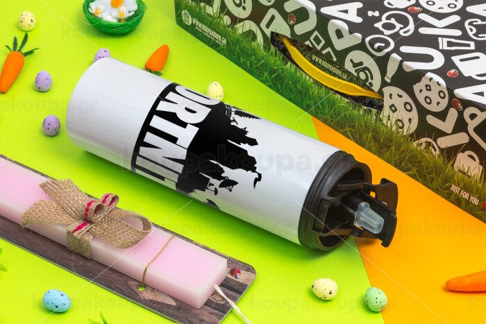 Fortnite, Πασχαλινή Λαμπάδα με Travel Tumbler θερμό με διπλό καπάκι (600ml, BPA free) & κερί αρωματικό πλακέ (30cm) (ΡΟΖ)