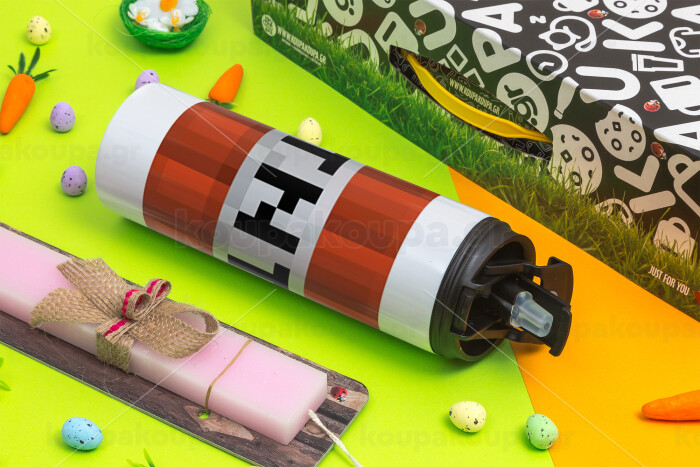 Minecraft TNT, Πασχαλινή Λαμπάδα με Travel Tumbler θερμό με διπλό καπάκι (600ml, BPA free) & κερί αρωματικό πλακέ (30cm) (ΡΟΖ)