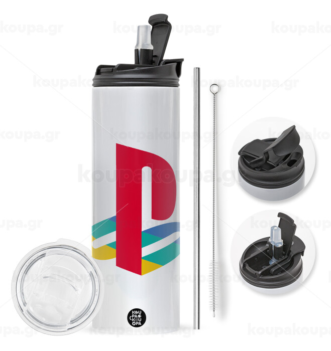 με 2 καπάκια για να επιλέξετε ανάμεσα σε απλό ποτήρι με καλαμάκι ή μετατροπή σε παγούρι θερμό με 2 τρόπους χρήσης (καλαμάκι ή στόμιο) με μεταλλικό επαναχρησιμοποιούμενο καλαμάκι. Απολαύστε το αγαπημένο σας ρόφημα κάθε στιγμή στο μοναδικό αυτό οικολογικό θερμό. Διατηρεί τη θερμοκρασία για αρκετές ώρες και είναι κατασκευασμένο από ανοξείδωτο ατσάλι. Κατάλληλο για ζεστά και κρύα ροφήματα. Συνοδεύεται από βουρτσάκι καθαρισμού για το καλαμάκι.