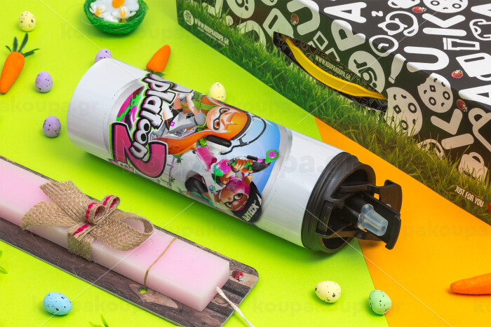 Splatoon 2, Πασχαλινή Λαμπάδα με Travel Tumbler θερμό με διπλό καπάκι (600ml, BPA free) & κερί αρωματικό πλακέ (30cm) (ΡΟΖ)