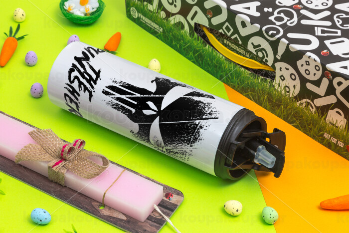 The punisher, Πασχαλινή Λαμπάδα με Travel Tumbler θερμό με διπλό καπάκι (600ml, BPA free) & κερί αρωματικό πλακέ (30cm) (ΡΟΖ)