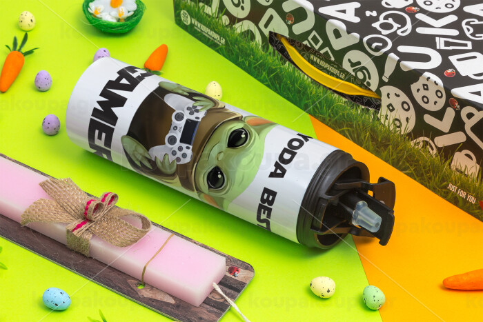 Yoda Best Gamer, Πασχαλινή Λαμπάδα με Travel Tumbler θερμό με διπλό καπάκι (600ml, BPA free) & κερί αρωματικό πλακέ (30cm) (ΡΟΖ)