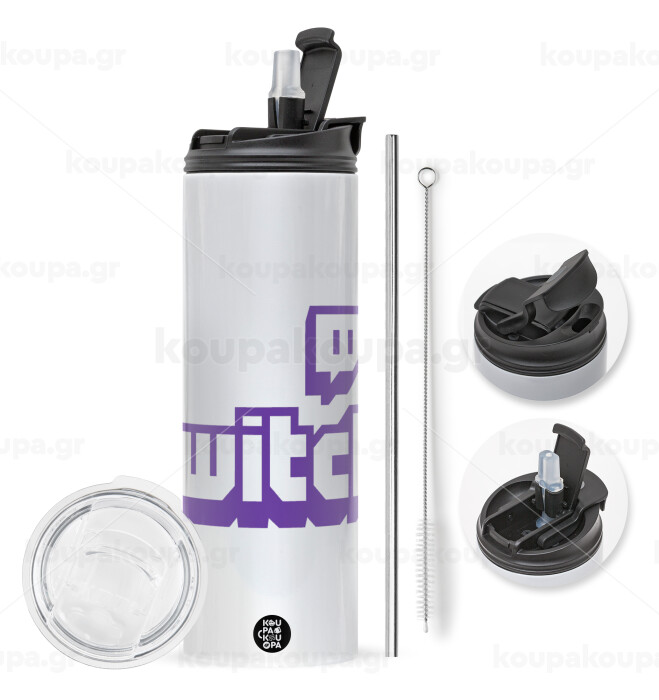 με 2 καπάκια για να επιλέξετε ανάμεσα σε απλό ποτήρι με καλαμάκι ή μετατροπή σε παγούρι θερμό με 2 τρόπους χρήσης (καλαμάκι ή στόμιο) με μεταλλικό επαναχρησιμοποιούμενο καλαμάκι. Απολαύστε το αγαπημένο σας ρόφημα κάθε στιγμή στο μοναδικό αυτό οικολογικό θερμό. Διατηρεί τη θερμοκρασία για αρκετές ώρες και είναι κατασκευασμένο από ανοξείδωτο ατσάλι. Κατάλληλο για ζεστά και κρύα ροφήματα. Συνοδεύεται από βουρτσάκι καθαρισμού για το καλαμάκι.