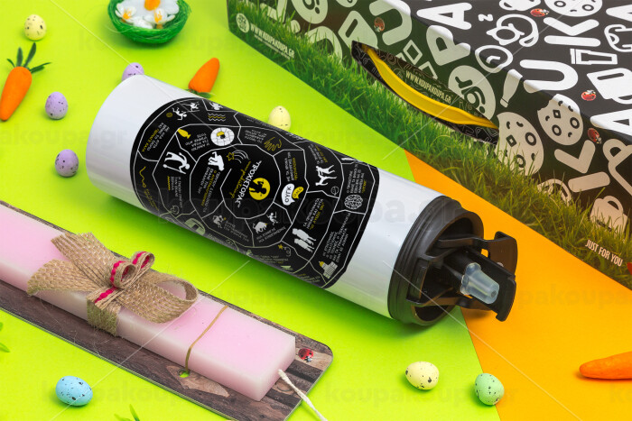Προχίστορας, Πασχαλινή Λαμπάδα με Travel Tumbler θερμό με διπλό καπάκι (600ml, BPA free) & κερί αρωματικό πλακέ (30cm) (ΡΟΖ)
