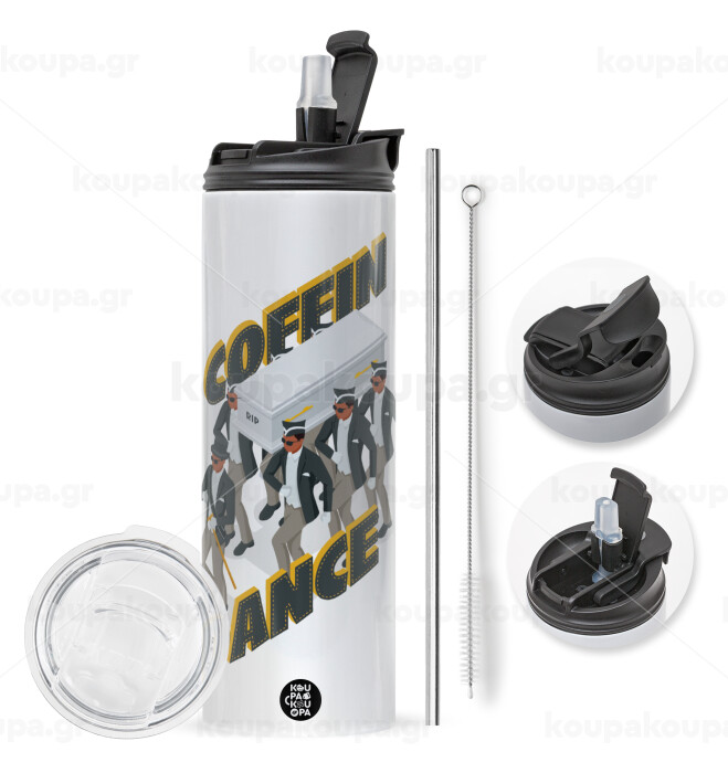 με 2 καπάκια για να επιλέξετε ανάμεσα σε απλό ποτήρι με καλαμάκι ή μετατροπή σε παγούρι θερμό με 2 τρόπους χρήσης (καλαμάκι ή στόμιο) με μεταλλικό επαναχρησιμοποιούμενο καλαμάκι. Απολαύστε το αγαπημένο σας ρόφημα κάθε στιγμή στο μοναδικό αυτό οικολογικό θερμό. Διατηρεί τη θερμοκρασία για αρκετές ώρες και είναι κατασκευασμένο από ανοξείδωτο ατσάλι. Κατάλληλο για ζεστά και κρύα ροφήματα. Συνοδεύεται από βουρτσάκι καθαρισμού για το καλαμάκι.