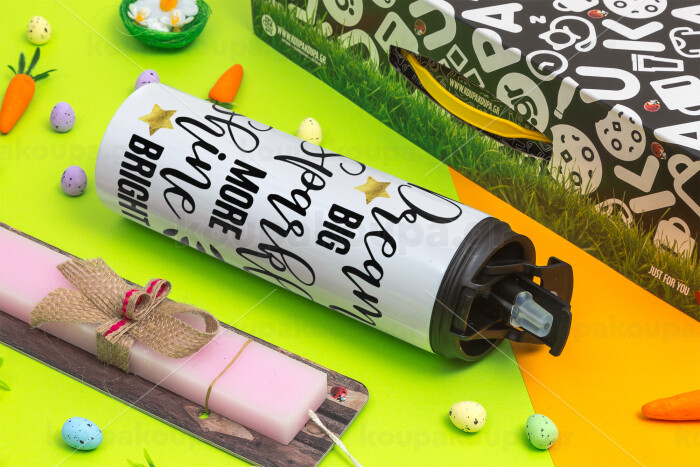 Dream big, Sparkle more, Shine bright, Πασχαλινή Λαμπάδα με Travel Tumbler θερμό με διπλό καπάκι (600ml, BPA free) & κερί αρωματικό πλακέ (30cm) (ΡΟΖ)