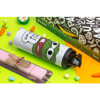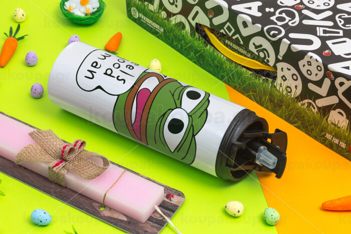 Pepe the frog, Πασχαλινή Λαμπάδα με Travel Tumbler θερμό με διπλό καπάκι (600ml, BPA free) & κερί αρωματικό πλακέ (30cm) (ΡΟΖ)