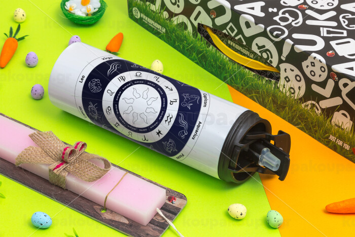 Ζωδιακός κύκλος, Πασχαλινή Λαμπάδα με Travel Tumbler θερμό με διπλό καπάκι (600ml, BPA free) & κερί αρωματικό πλακέ (30cm) (ΡΟΖ)