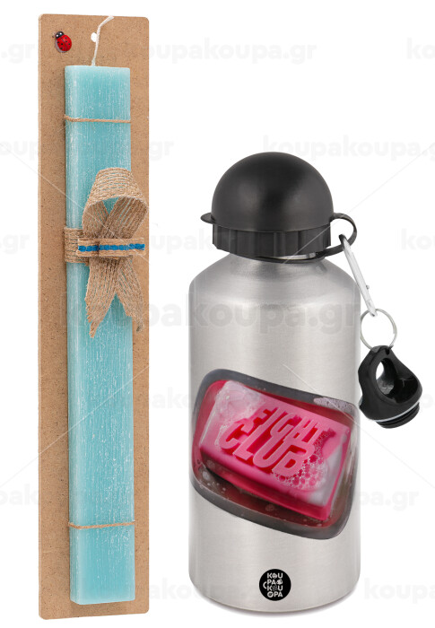 Fight Club, Πασχαλινή Λαμπάδα με παγούρι μεταλλικό Ασημένιο αλουμινίου (500ml) & κερί αρωματικό πλακέ (30cm) (ΤΙΡΚΟΥΑΖ)