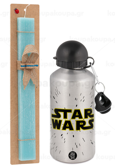 Star Wars, Πασχαλινή Λαμπάδα με παγούρι μεταλλικό Ασημένιο αλουμινίου (500ml) & κερί αρωματικό πλακέ (30cm) (ΤΙΡΚΟΥΑΖ)