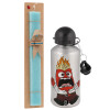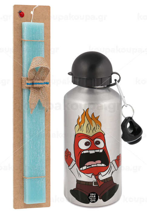 Inside Out θυμός, Πασχαλινή Λαμπάδα με παγούρι μεταλλικό Ασημένιο αλουμινίου (500ml) & κερί αρωματικό πλακέ (30cm) (ΤΙΡΚΟΥΑΖ)