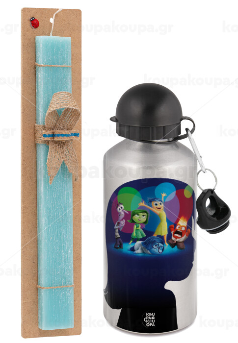 Τα Μυαλά που Κουβαλάς, Πασχαλινή Λαμπάδα με παγούρι μεταλλικό Ασημένιο αλουμινίου (500ml) & κερί αρωματικό πλακέ (30cm) (ΤΙΡΚΟΥΑΖ)