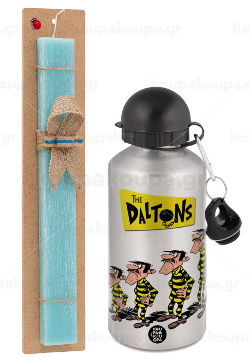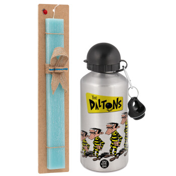 The Daltons, Πασχαλινή Λαμπάδα με παγούρι μεταλλικό Ασημένιο αλουμινίου (500ml) & κερί αρωματικό πλακέ (30cm) (ΤΙΡΚΟΥΑΖ)