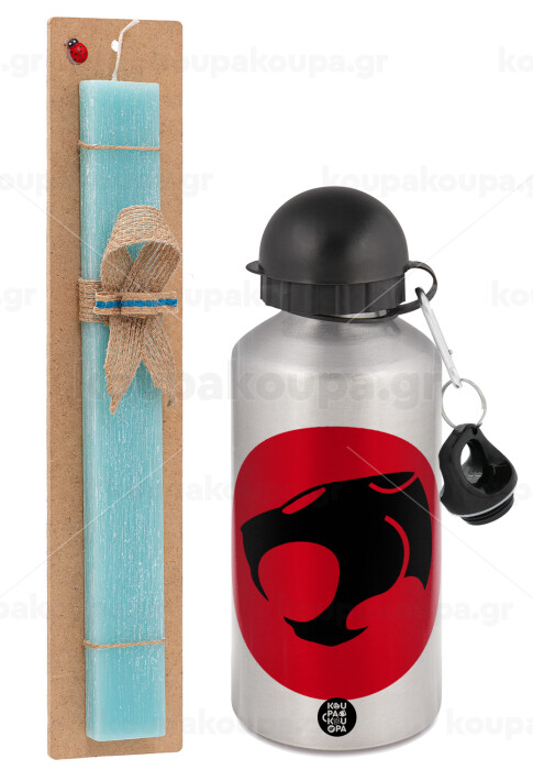 Thundercats, Πασχαλινή Λαμπάδα με παγούρι μεταλλικό Ασημένιο αλουμινίου (500ml) & κερί αρωματικό πλακέ (30cm) (ΤΙΡΚΟΥΑΖ)