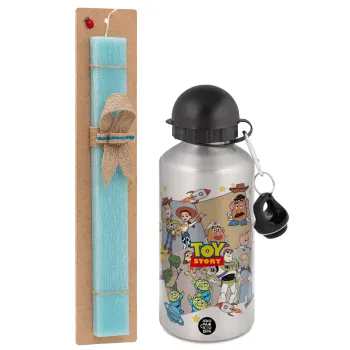 toystory characters, Πασχαλινή Λαμπάδα με παγούρι μεταλλικό Ασημένιο αλουμινίου (500ml) & κερί αρωματικό πλακέ (30cm) (ΤΙΡΚΟΥΑΖ)