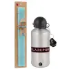 BLACKPINK, Πασχαλινή Λαμπάδα με παγούρι μεταλλικό Ασημένιο αλουμινίου (500ml) & κερί αρωματικό πλακέ (30cm) (ΤΙΡΚΟΥΑΖ)