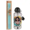 Dua lipa, Πασχαλινή Λαμπάδα με παγούρι μεταλλικό Ασημένιο αλουμινίου (500ml) & κερί αρωματικό πλακέ (30cm) (ΤΙΡΚΟΥΑΖ)