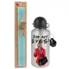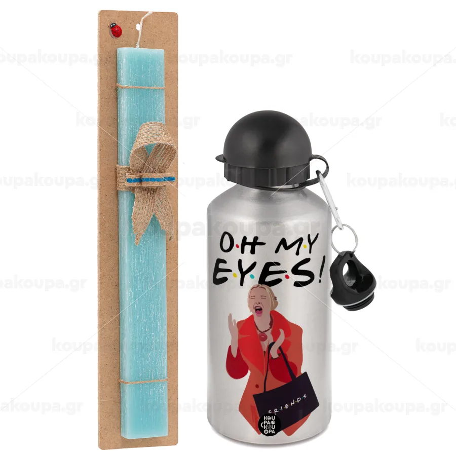 Friends,. oh my eyes Phoebe, Πασχαλινή Λαμπάδα με παγούρι μεταλλικό Ασημένιο αλουμινίου (500ml) & κερί αρωματικό πλακέ (30cm) (ΤΙΡΚΟΥΑΖ)