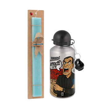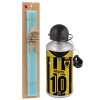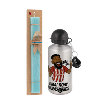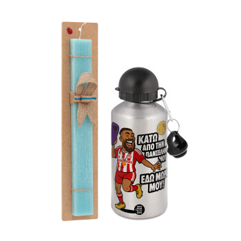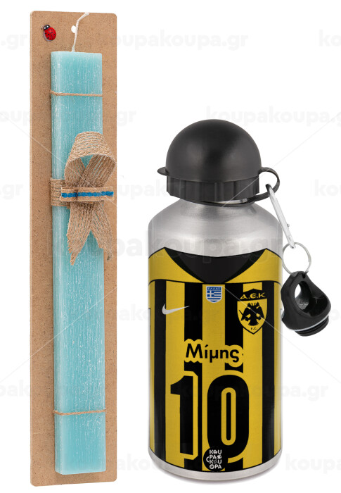 ΑΕΚ εμφάνιση, Πασχαλινή Λαμπάδα με παγούρι μεταλλικό Ασημένιο αλουμινίου (500ml) & κερί αρωματικό πλακέ (30cm) (ΤΙΡΚΟΥΑΖ)