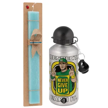 John Cena, Πασχαλινή Λαμπάδα με παγούρι μεταλλικό Ασημένιο αλουμινίου (500ml) & κερί αρωματικό πλακέ (30cm) (ΤΙΡΚΟΥΑΖ)