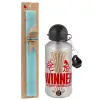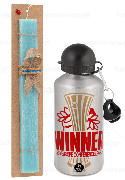 Europa Conference League WINNER, Πασχαλινή Λαμπάδα με παγούρι μεταλλικό Ασημένιο αλουμινίου (500ml) & κερί αρωματικό πλακέ (30cm) (ΤΙΡΚΟΥΑΖ)