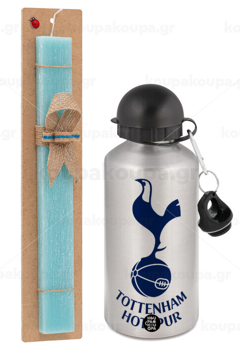 Tottenham Hotspur, Πασχαλινή Λαμπάδα με παγούρι μεταλλικό Ασημένιο αλουμινίου (500ml) & κερί αρωματικό πλακέ (30cm) (ΤΙΡΚΟΥΑΖ)