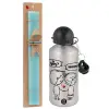 Τι έχεις? Τίποτα!, Πασχαλινή Λαμπάδα με παγούρι μεταλλικό Ασημένιο αλουμινίου (500ml) & κερί αρωματικό πλακέ (30cm) (ΤΙΡΚΟΥΑΖ)