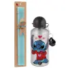 Stitch heart, Πασχαλινή Λαμπάδα με παγούρι μεταλλικό Ασημένιο αλουμινίου (500ml) & κερί αρωματικό πλακέ (30cm) (ΤΙΡΚΟΥΑΖ)