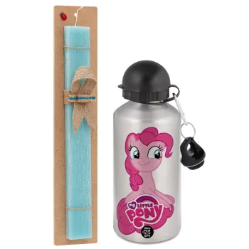 Μικρό μου Πόνυ, Πασχαλινή Λαμπάδα με παγούρι μεταλλικό Ασημένιο αλουμινίου (500ml) & κερί αρωματικό πλακέ (30cm) (ΤΙΡΚΟΥΑΖ)