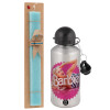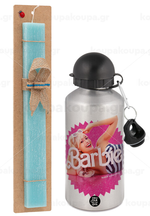 Barbie is everything, Πασχαλινή Λαμπάδα με παγούρι μεταλλικό Ασημένιο αλουμινίου (500ml) & κερί αρωματικό πλακέ (30cm) (ΤΙΡΚΟΥΑΖ)