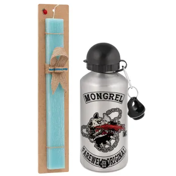 Day's Gone, mongrel farewell original, Πασχαλινή Λαμπάδα με παγούρι μεταλλικό Ασημένιο αλουμινίου (500ml) & κερί αρωματικό πλακέ (30cm) (ΤΙΡΚΟΥΑΖ)
