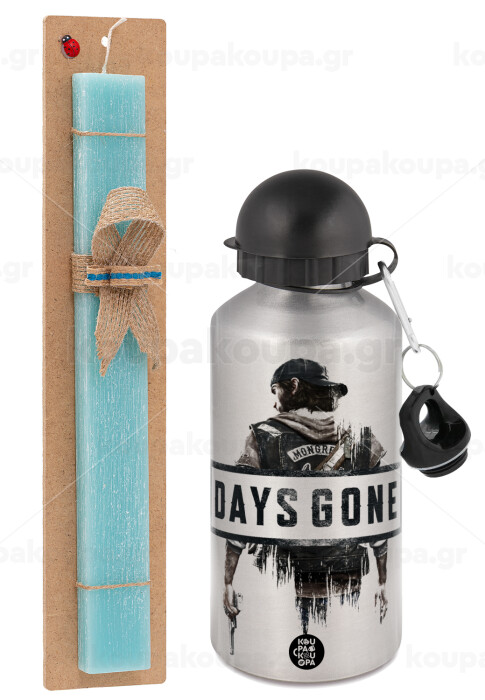 Day's Gone, Πασχαλινή Λαμπάδα με παγούρι μεταλλικό Ασημένιο αλουμινίου (500ml) & κερί αρωματικό πλακέ (30cm) (ΤΙΡΚΟΥΑΖ)